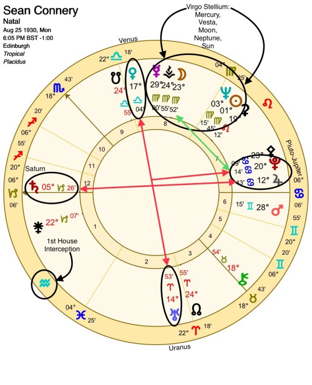 Connery’s Virgo stellium is not manifesting in exactly the same manner as Keanu Reeves’, then this assumption would ignore all the other factors in Connery’s chart (or vice versa, Reeves’) that are mixing with his Virgo stellium and augmenting its manifestation. This would be comparing “apples to oranges”.