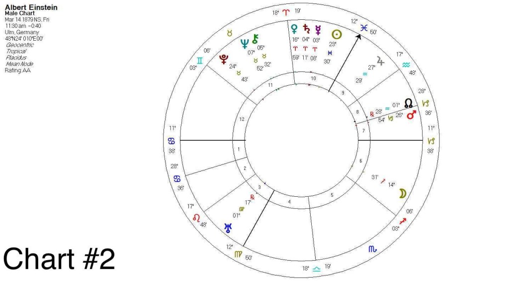 [iii] Einstein did have a reputation for being notoriously absent minded and disorganized in his personal life. This is a bit of a contradiction given the organization and discipline required of anyone seeking confirmation and achievement within the scientific and mathematical communities. I believe that Neptune’s reputation for causing confusion and imagination both applied equally, but he tended to “compartmentalize” how it manifested in his life.